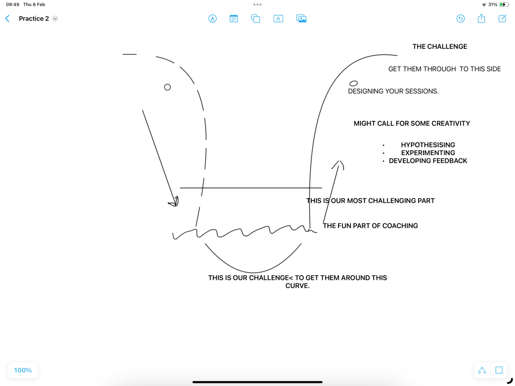 Once they hit the bottom, the challenge for me ( for us ), is to get them around the bottom of this U and up the other side. I now have to be creative, armed with the information I have gathered on the other side, and find the sticking points.