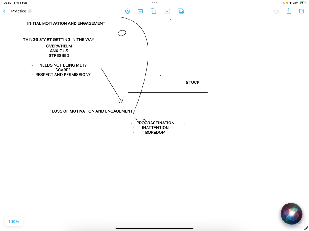 I can use this as my go-to model to create an image of the person/persons in front of me, and visualise the downward slide from initially being motivated or engaged to being unmotivated and disengaged, till they hit the bottom.